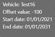 - Odometer offsets - information about Vehicle, Offset value, Start and End dare will appear on hover