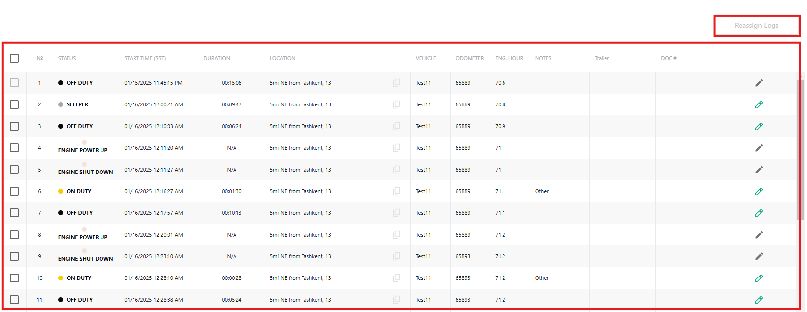 - Status – The driver’s status at that time (e.g., Off Duty, On Duty, Driving, Sleeper).