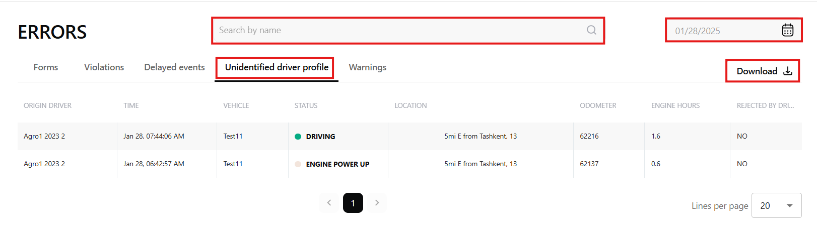 - Search violations by driver name or vehicle name.
