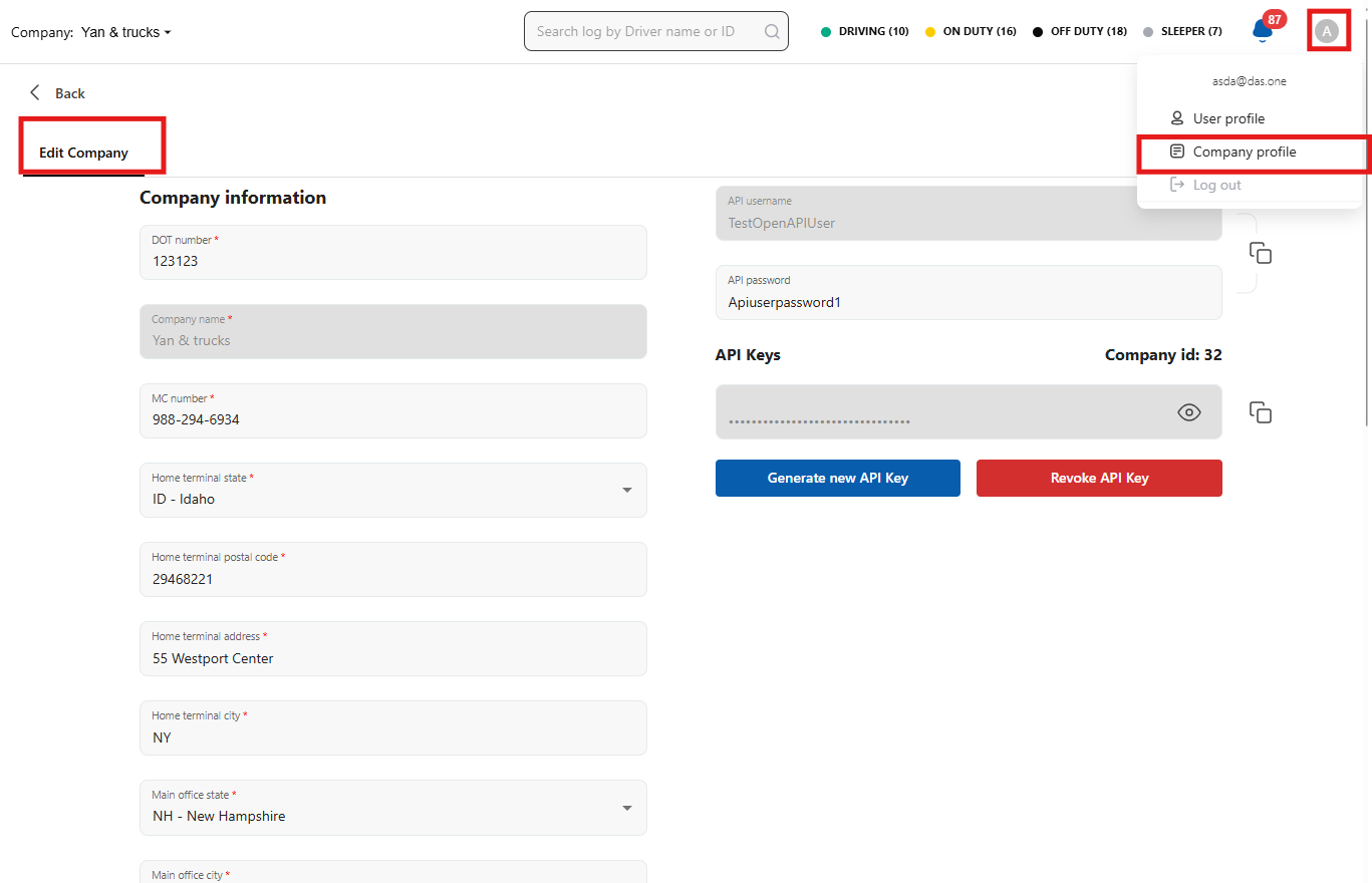 In the MGK ELD system, it is possible to receive email and telegram notifications about the Company's system events like: