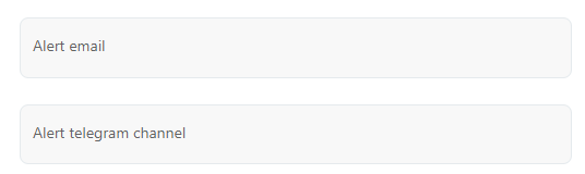 2. Scroll down to the "Alert email" and "Alert telegram channel" fields